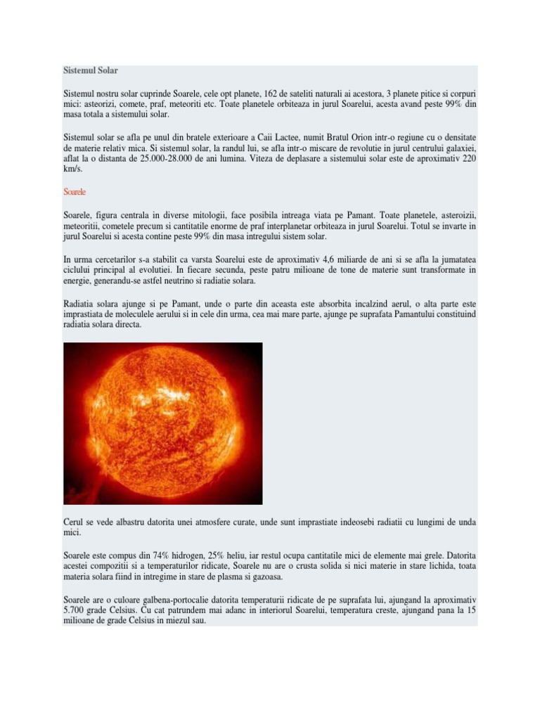 Proiect De Lectie Soarele Planetele și Viața Pe Pămant
