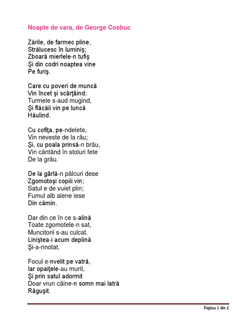 Noapte De Vara De George Cosbuc Printat Docx