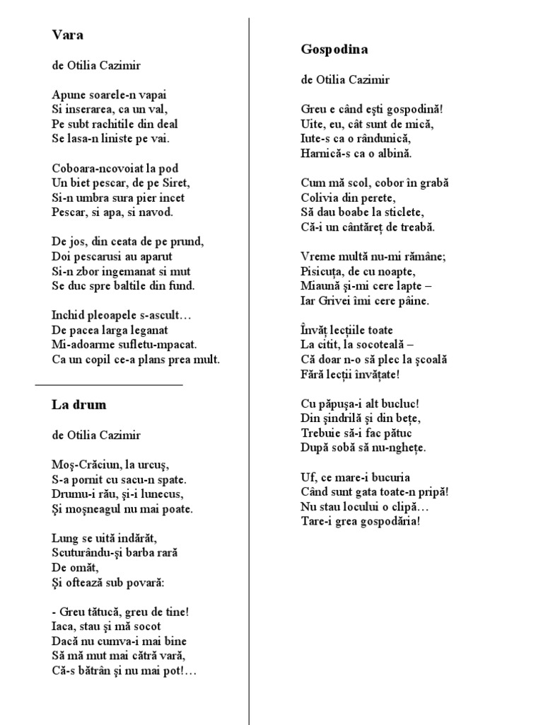 Vara De Otilia Cazimir Poezii Si Versuri
