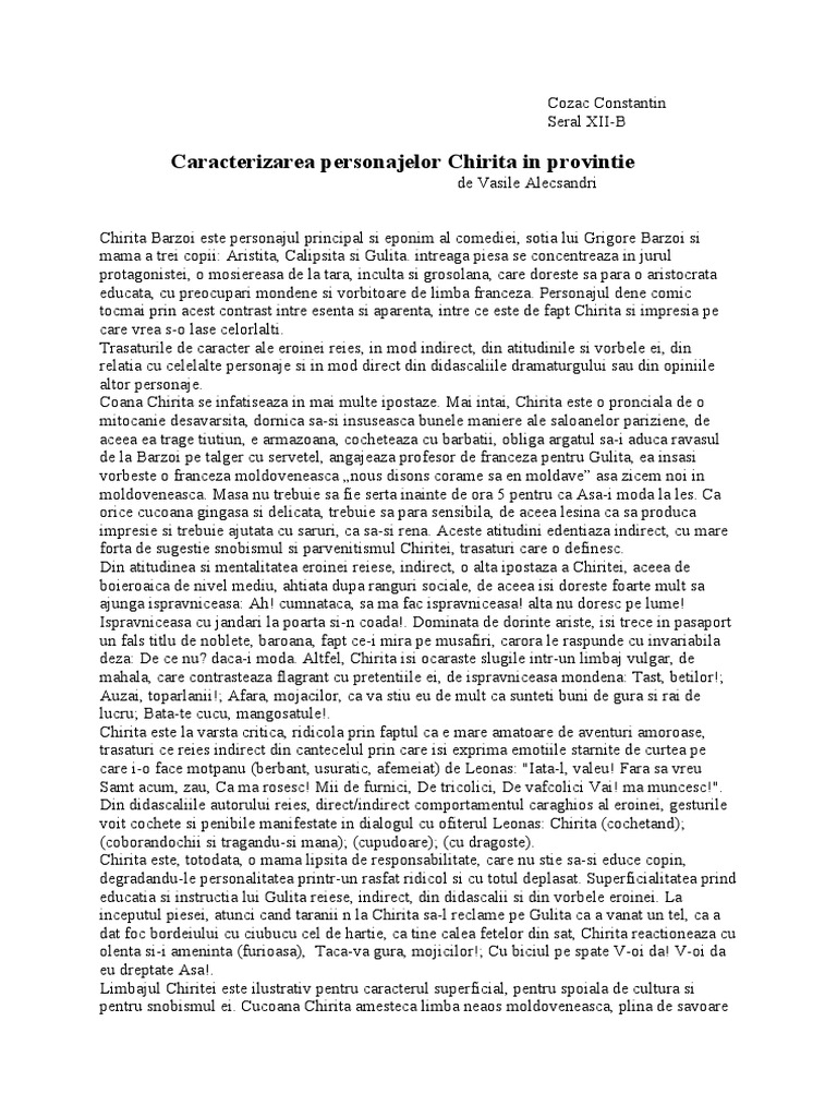 Caracterizare Chirita Chirita In Provintie Docx Document