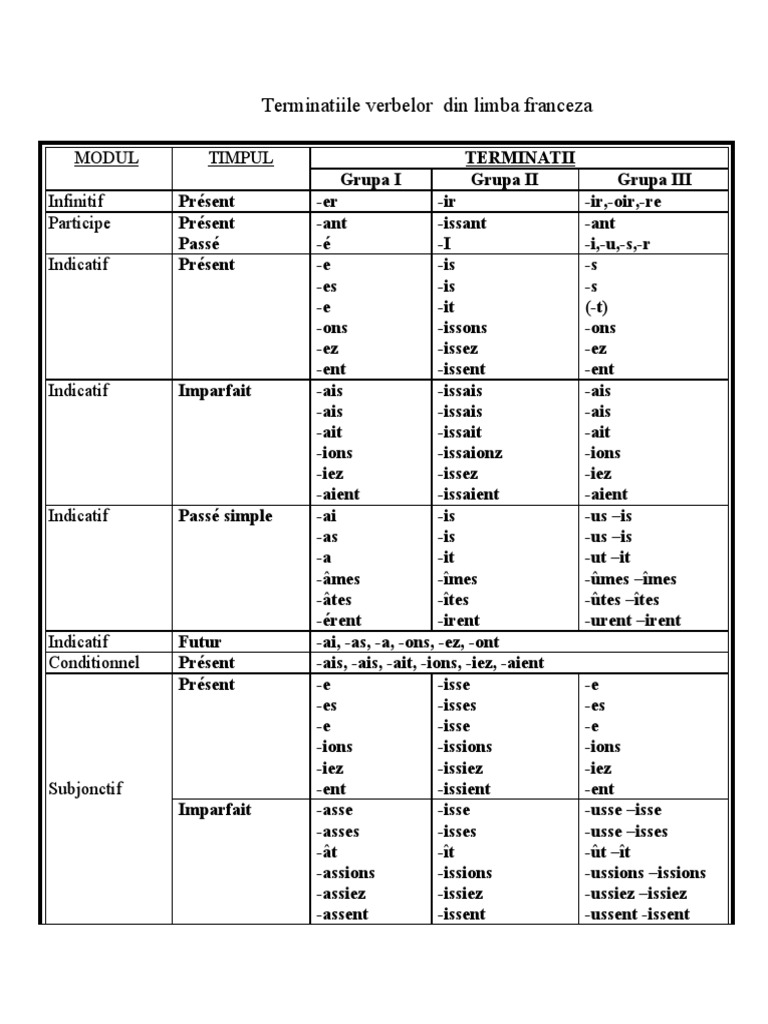 Cele 3 Grupe De Verbe In Limba Franceză Docx