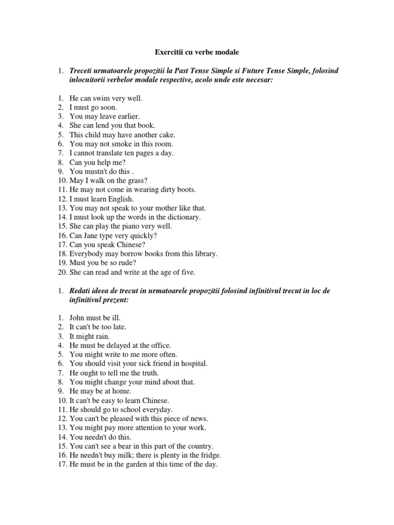 Exercitii Cu Verbe Modale Grammatical Tense Rules