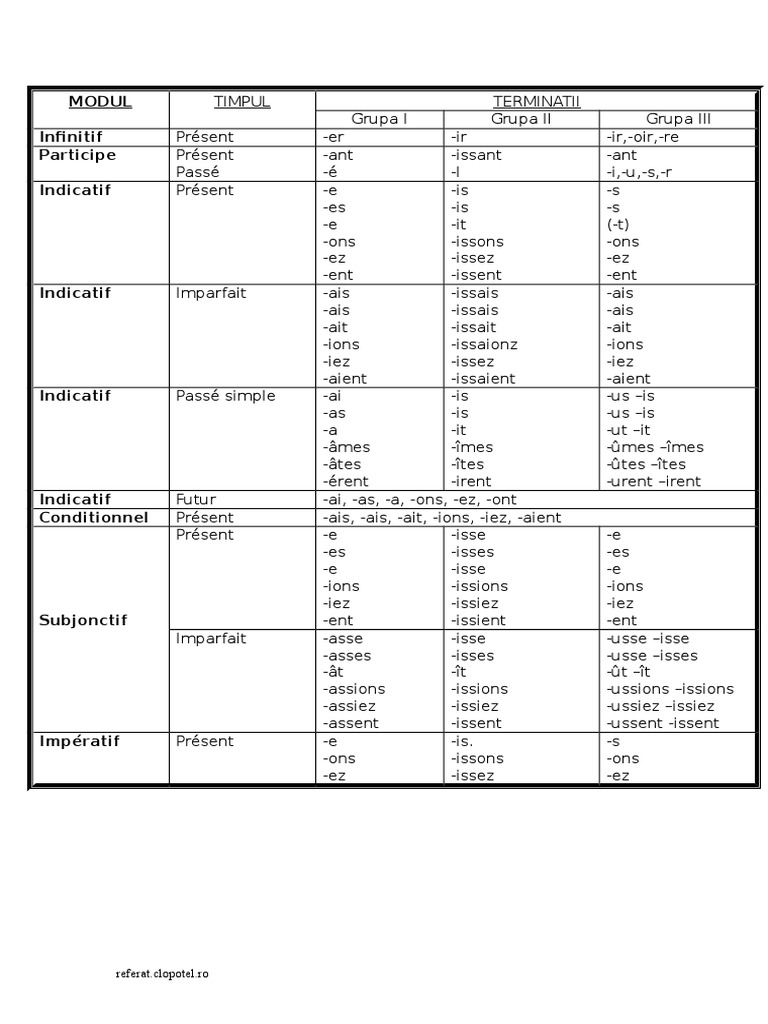 Terminatiile Verbelor Din Limba Franceza Linguistique Syntaxe