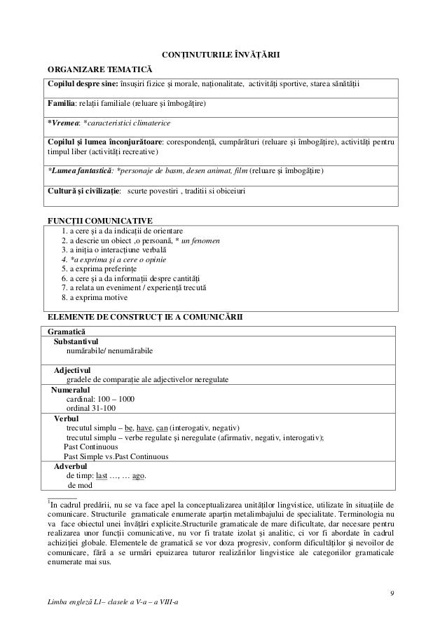 Limba Engleza 1 Clasele A V A A Viii A