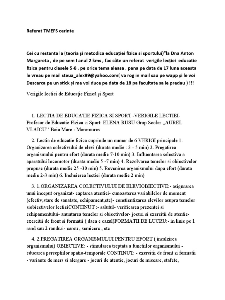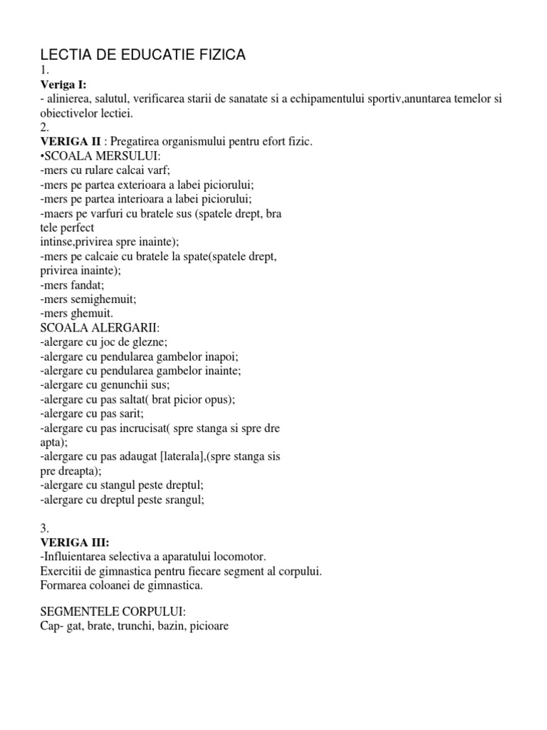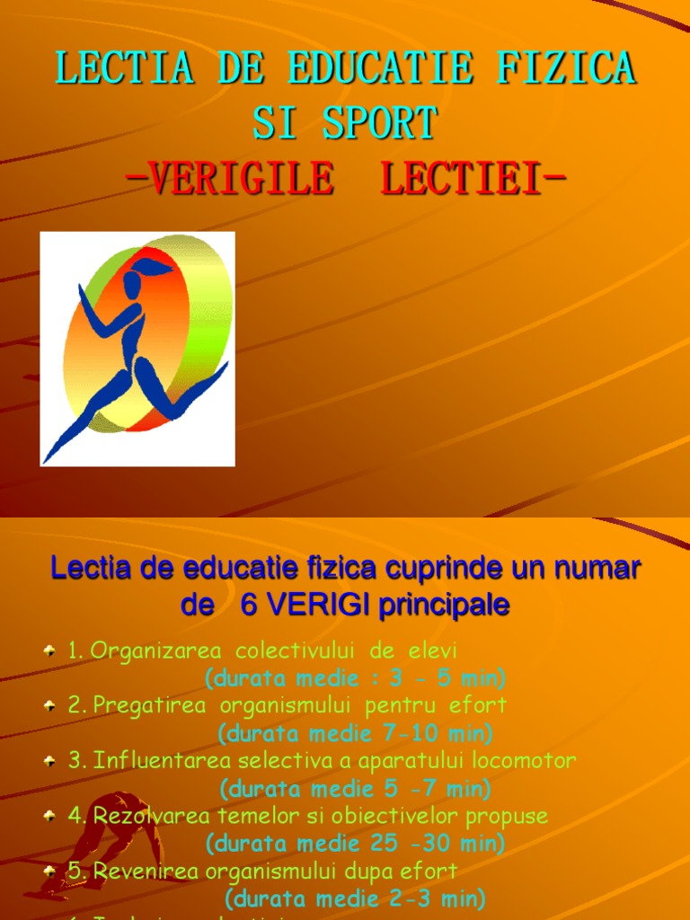 0lectia De Educatie Fizica Si Sport Verigile Lectiei Pdf Document