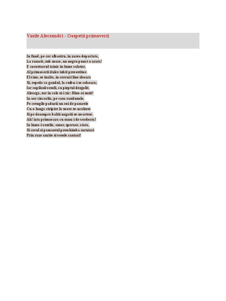 Oaspetii Primaverii De Vasile Alecsandri