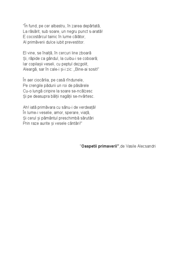 Oaspetii Primaverii De Vasile Alecsandri Anideșcoală Ro