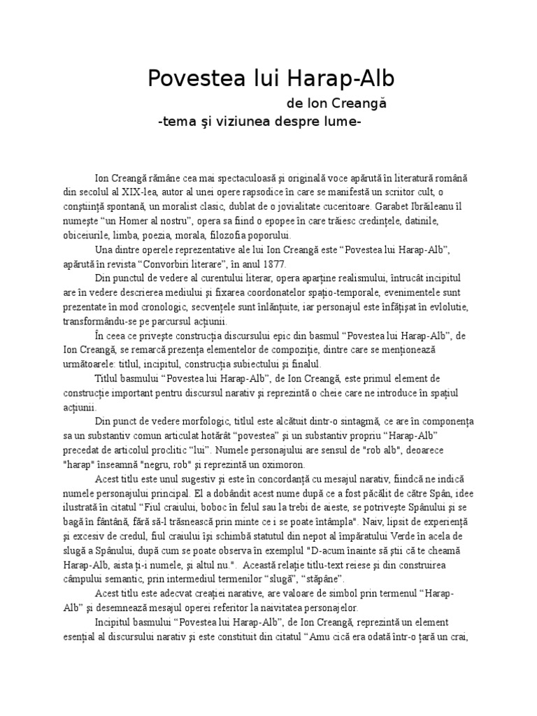 Doc Tema Si Viziunea Despre Lume In Povestea Lui Harap Alb George Barbu Academia Edu