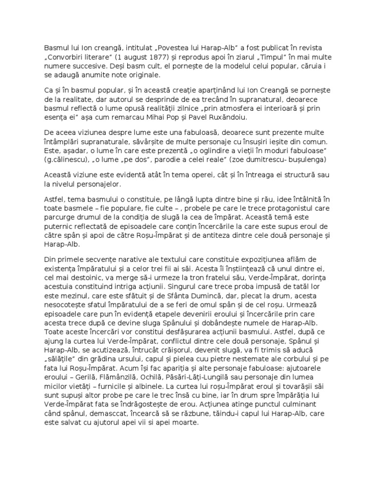 Doc Particularitatile Basmului Cult Povestea Lui Harap Alb Tema Si Viziunea Despre Lume De Ion Creanga Mădălina Bunea Academia Edu