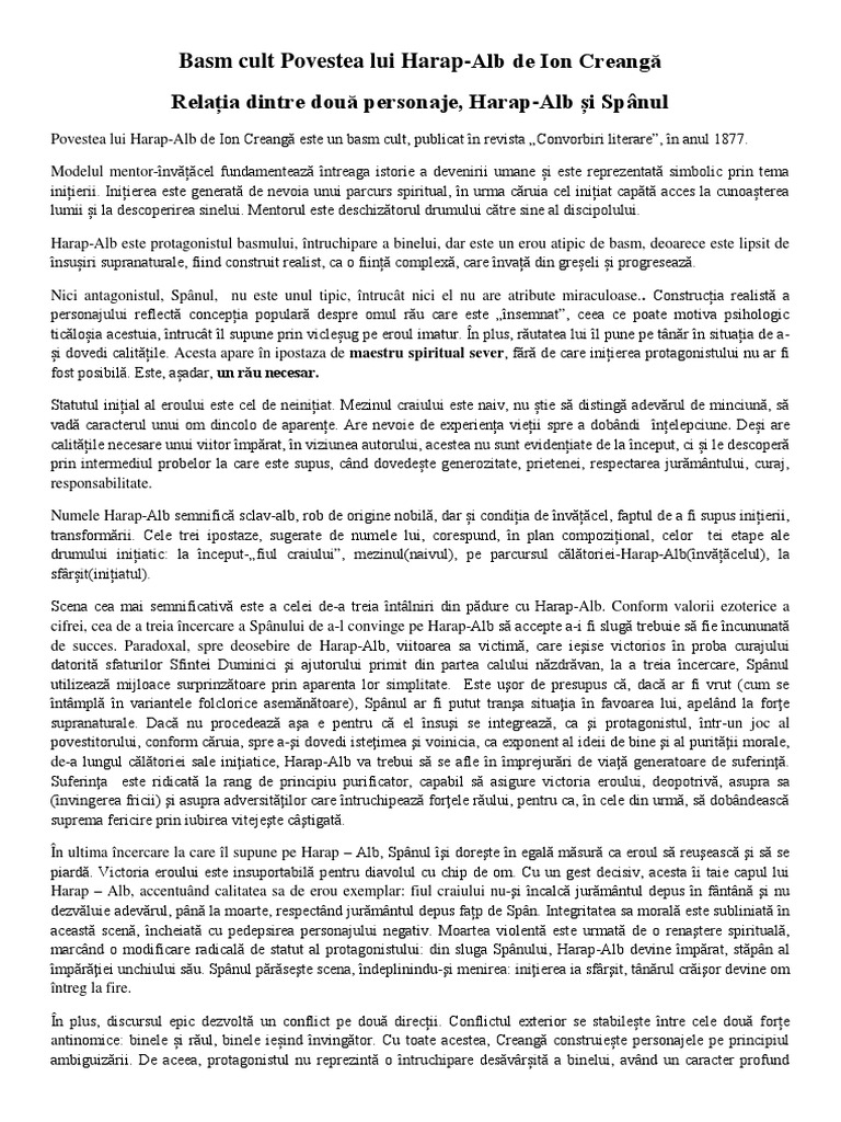 Povestea Lui Harap Alb Eseu Bac