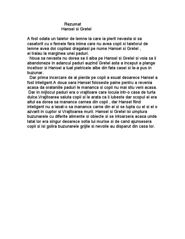 Rezumat Hansel Si Gretel