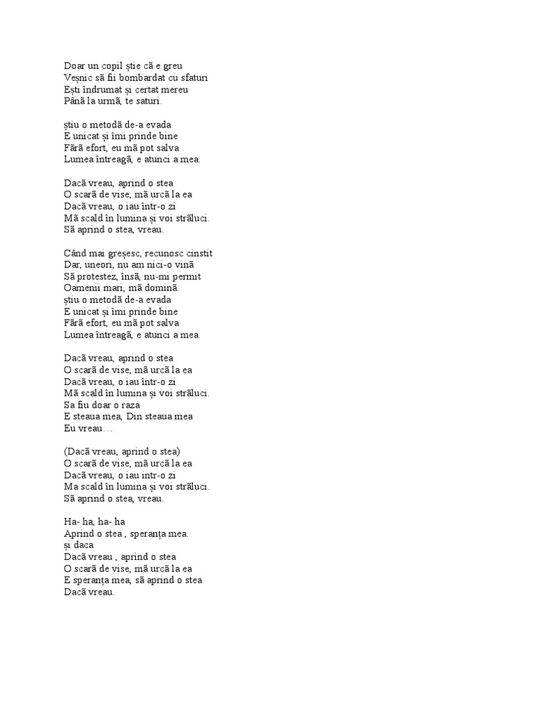 Vreau Sa Am Steaua Mea Versuri