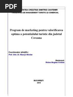 Program De Marketing Pentru Valorifcarea Optima A Potentialului Turistic Din Judetul Covasna