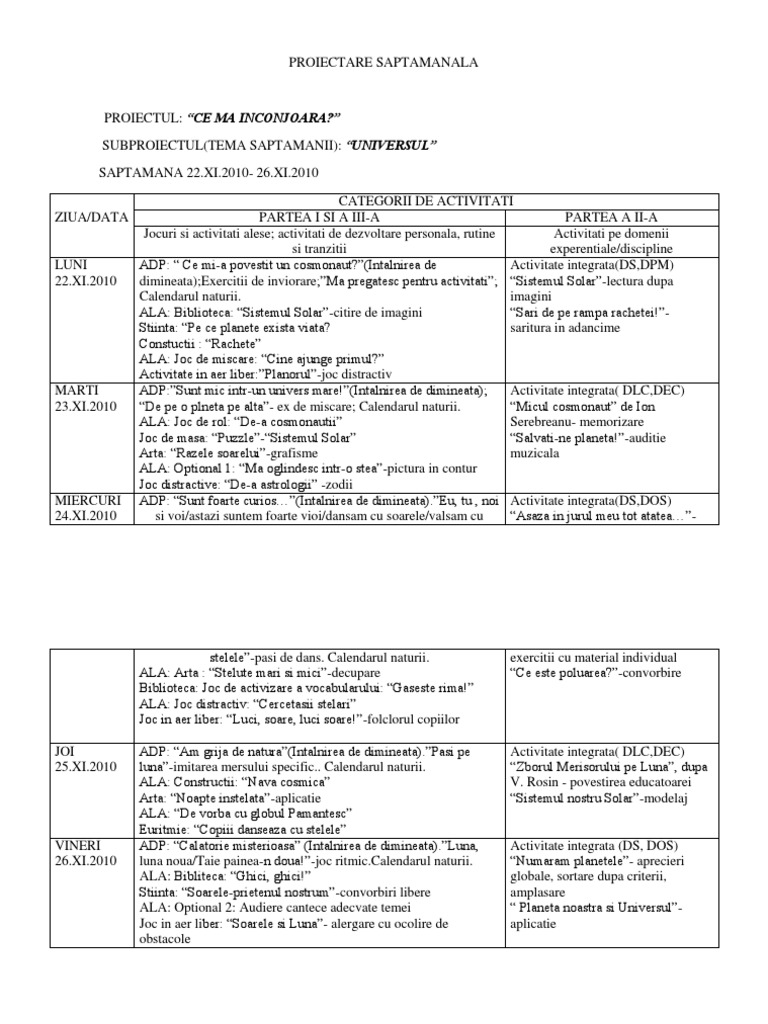 Proiectare Saptamanala