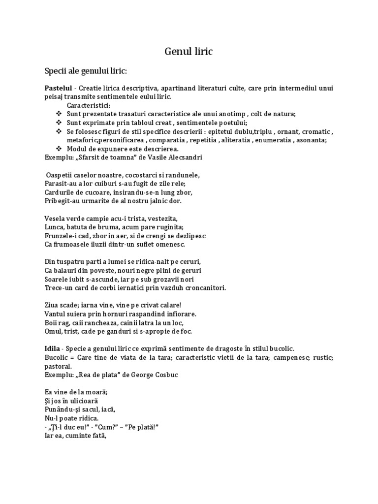 Genul Liric Specii Ale Genului Liric