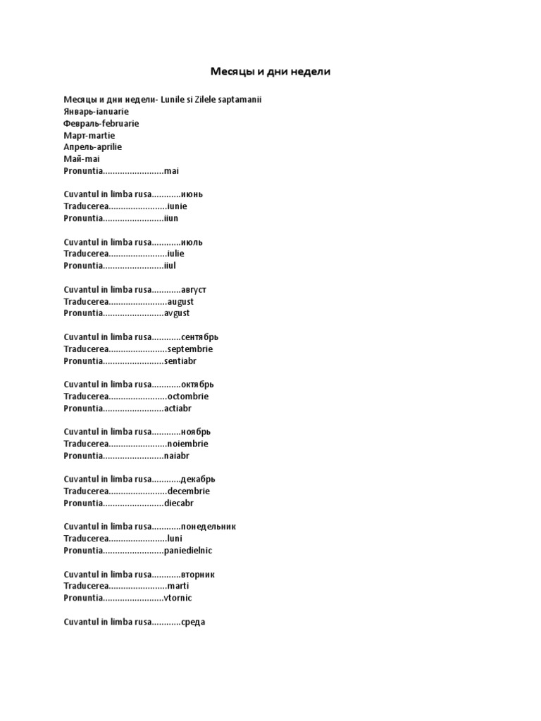 From Russia With Love Lunile Si Zilele Saptamanii Mesyacy I Dni Nedeli